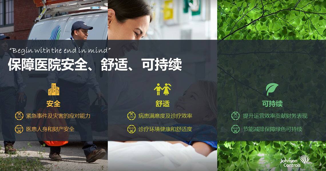 江森自控基于自身的楼宇自控、暖通空调、安防和消防解决方案以及广泛的战略合作,结合全球实践,针对性地提出了通过BWSI助力智慧医院“物联运维”的一站式全新服务理念和具体解决方案。实现医院安全、舒适、可持续。
